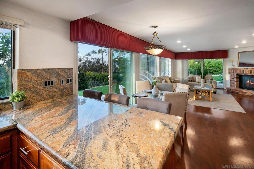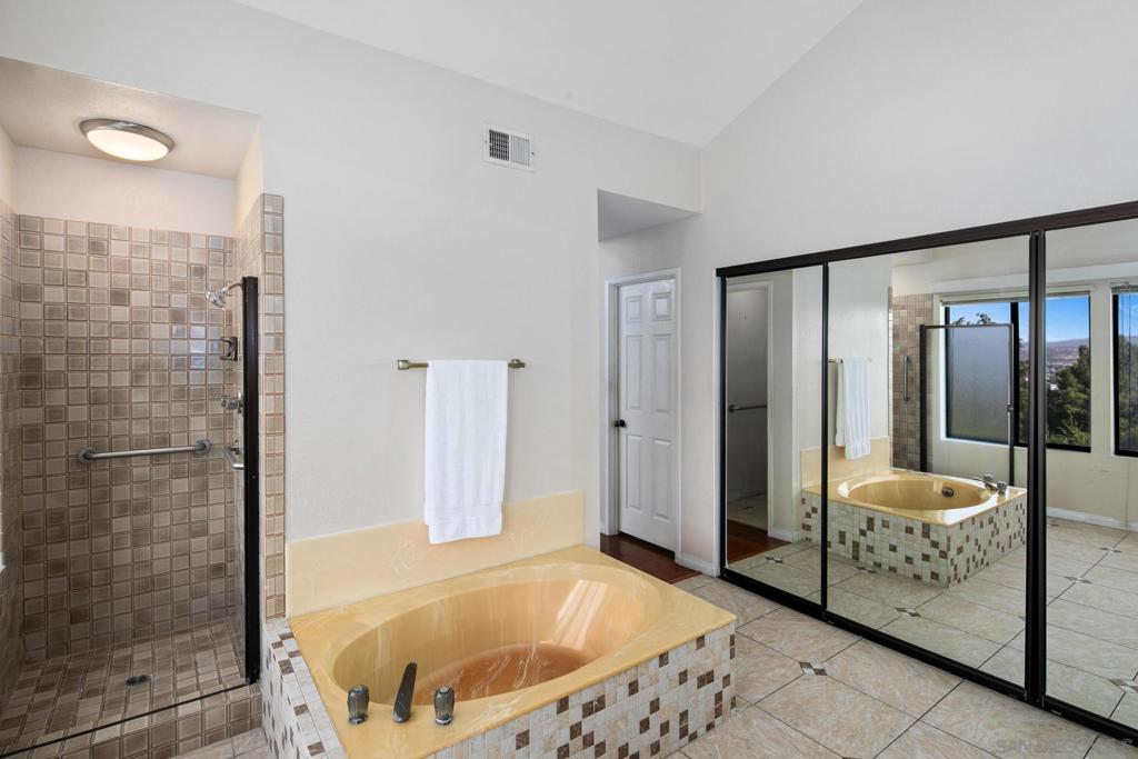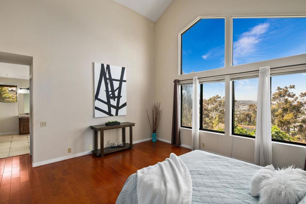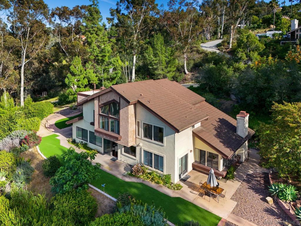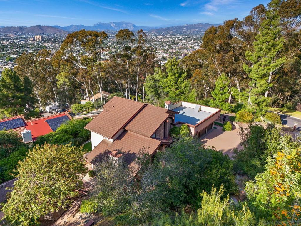 Tucked away on a private hillside in the coveted Mount Helix community, this expansive .56-acre usable lot offers serene seclusion and breathtaking panoramic views of the northern mountains and city skyline. The generous 4-bedroom, 3-bathroom residence welcomes you with soaring vaulted ceilings, an open and airy floor plan and a grand living room with fireplace that flows effortlessly into a formal dining area. At the heart of the home, a beautifully remodeled chef’s kitchen showcases designer cabinetry with pullouts, granite countertops, stainless steel appliances, recessed lighting, and an eat-in breakfast area. The kitchen opens to a warm and inviting family room with a cozy fireplace—perfect for both quiet evenings and lively gatherings. A bedroom and full bath on the main floor offer flexible living, while wood flooring, dual-pane windows and new carpeting throughout add timeless elegance and modern comfort. The primary retreat features vaulted ceilings, picture frame windows, dual sink vanity, walk in closet and separate soaking tub and shower. Indoor-outdoor living is at its finest here, with large windows inviting in natural light and framing spectacular views. The tranquil backyard is a private sanctuary featuring multiple sitting areas, ideal for entertaining, relaxing, or simply taking in the beauty of nature. Shutters, abundant built-in storage, separate laundry room and an attached 3-car garage further elevate the living experience. This highly sought after location in the Kimberly Woods neighborhood provides the charm of privacy and beauty with the ease of nearby shopping, dining, parks, top-rated schools and freeway access just minutes away. A true must see!