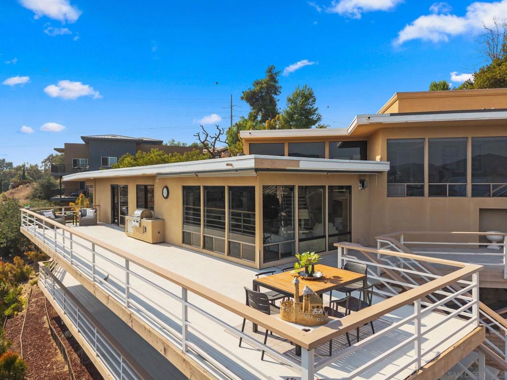 Stunning home with panoramic mountain & golf course views! This 3 bed plus den, 2.5 bath home offers 2,570 sq ft of bright with lots of natural light, open living space on nearly an acre. The main-level primary suite features expansive windows framing breathtaking vistas and includes a walk-in closet. Entertain with ease in the upgraded kitchen, formal dining area, plus den/office and spacious living room with fireplace—all flowing to a wraparound deck with built-in BBQ. Downstairs you’ll find 2 guest bedrooms, full bath, office, and additional living space with direct access to the lower deck and sparkling pool and spa. Uninstalled owned solar panels, new roof, central AC, and an oversized 2-car garage add convenience as well as two additional storage rooms. Enjoy private cul-de-sac living with lush landscaping, protected views, and close proximity to Sycuan/Singing Hills Golf Course, Sycuan Casino, and San Diego FC training facility. A perfect blend of indoor comfort and outdoor lifestyle—don’t miss this move-in ready retreat!