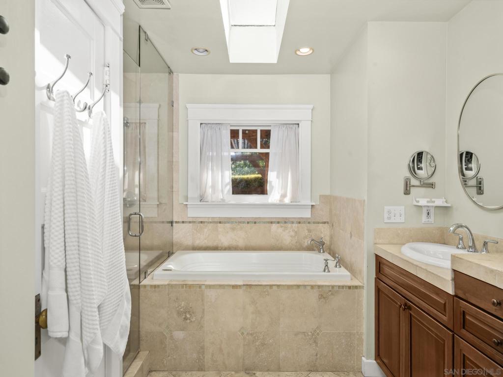 You’ve been searching… I know you have… San Diego is such a wonderful livable city, but you still yearn for that perfect blend of city convenience and an abundance of greenspace to live and breathe in the fresh air. Welcome to Morley Field. An urban oasis where nature and community intertwine seamlessly. Even better, welcome home to legacy craftsman architecture that has been brilliantly expanded and adapted for today’s living. The location is storybook perfect, just a short block to Balboa Park. Curb appeal flows with romance and beauty. The interior features hardwood floors, spacious rooms, remodeled kitchen and baths, a wonderful primary suite, and guest quarters. The exterior offerings include large yard, deck and outdoor living room setup with a big built in pergola. *See Supplement for Details* This home is welcoming in all spaces. From the beautifully landscaped front yard to the sundrenched entry room foyer, you will feel warm and at home from the moment you enter. The living room, with large centerpiece fireplace, and the spacious light-filled dining room both feature craftsman details and are ideal for intimate or larger scale entertaining. They flow directly into a modern remodeled kitchen, which boasts excellent workspaces, beautiful granite counters, Thermador range, and plenty of cabinetry and storage. The LG laundry set up is just off the kitchen with a direct access to the side yard outdoor living spaces. The spacious 2nd and 3rd bedrooms are perfect, and both feature generous closet space. The real highlight of the home must be the amazing primary suite, though. It is a large, beautiful room which opens out through French doors onto the deck and backyard. There is a dramatic gas fireplace, and the suite features dual large-scale wardrobes. No more dibs on which closet is better. Here, there is plenty for everyone! This type of en-suite bath is rarely encountered in craftsman homes like this. It features a deep spa jet tub and an oversized shower with dual shower heads so you can bask in the luxury! Morley Field is North Park's lush and bustling backyard. As part of the vast Balboa Park, this multi-faceted complex is more than a sports destination, it's a vibrant tapestry of greenery, activity, and shared moments. It simply pulses with the energy of San Diego life. It’s where athletes compete on tennis courts, where kids learn to swim at the historic Bud Kearns Memorial Pool, and where cyclists race around the velodrome. Amidst all the action, friendly locals and visitors alike create a welcoming, communal atmosphere. From the early morning disc golfer to the afternoon picnicker, here is a place where every corner tells a story of an active, sun-kissed San Diego day!
