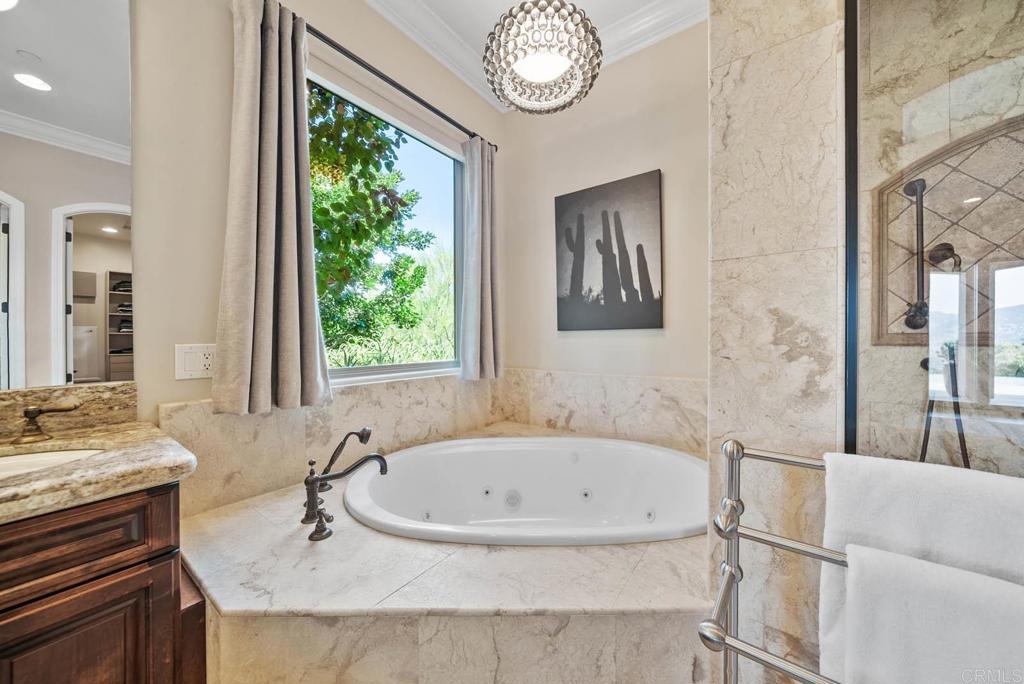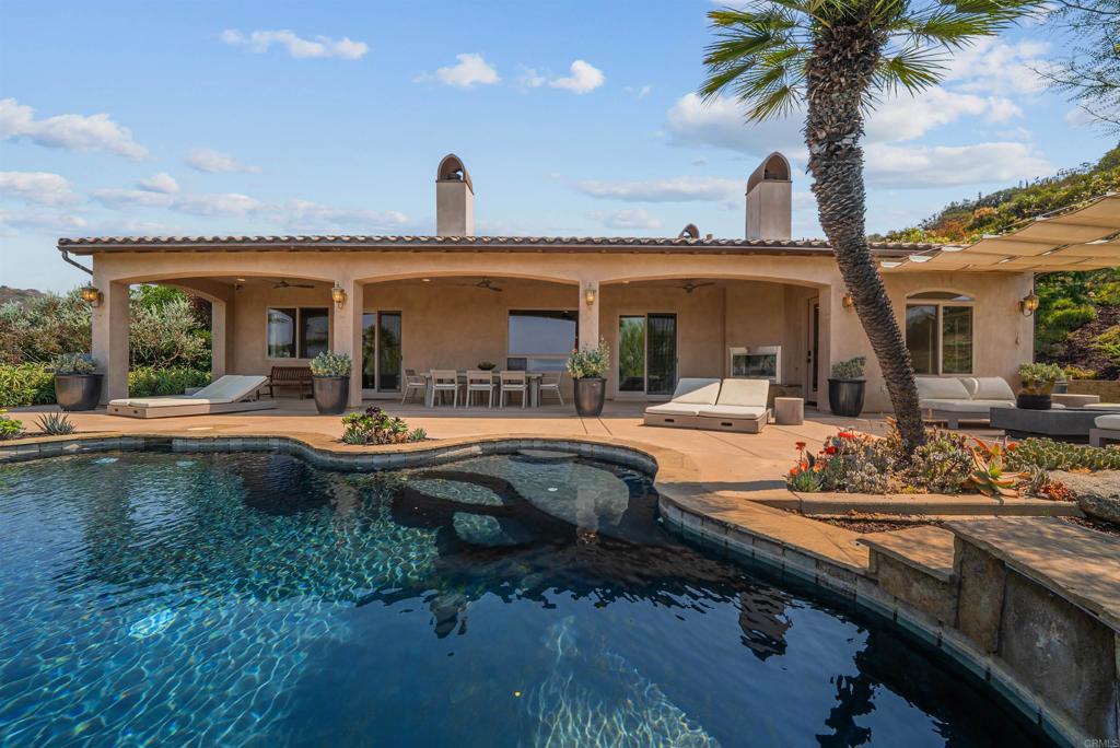 Occupying one of the highest ridge tops in the prestigious Talon’s Reach/Blossom Valley community, this 6-Acre, luxury estate offers unparalleled privacy, seclusion, and connection with nature. Situated at the end of Espinoza Road, a serene, rural-meets-refined corridor featuring gracious estates set on expansive acreage— this amazing property delivers both privacy and spectacular views. Set behind its own private gate at the end of a sweeping cobbled driveway, this absolutely gorgeous custom-built single-level home includes a pre-graded 3000 square foot building pad, perfect for an ADU, RV garage or guest house. Complete with a sizable citrus and avocado grove, this property offers plenty of space for the avid gardener. Designed with modern elegance and natural beauty in mind, this unique estate blends sleek finishes, panoramic mountain-to-city views, and oasis-like serenity into one extraordinary property. The open layout is filled with natural light, with expansive windows that capture sweeping vistas from nearly every room—bringing the outdoors in. Multiple living areas offer space for both grand entertaining and intimate gatherings, while an enormous chef’s kitchen anchors the home with high-end finishes, generous counter space, and seamless flow for culinary creativity. Designer upgrades and meticulous craftsmanship are found throughout, showcasing an attention to detail that defines luxury living. Step outside to an entertainer’s paradise: a zero-edge pool that seems to spill into the horizon, with golden sunsets and starry skies as your nightly backdrop. Just imagine soaking in your custom spa nestled among palo verde trees on a moon-lit night. Or, dining under the stars beside the outdoor fireplace as you take in the spectacular mountain and city views. This rare estate captures the essence of Blossom Valley—peaceful, private, and perfectly located. Whether you’re seeking a luxury residence, multi-generational living opportunity, or a nature-inspired sanctuary, this home delivers it all. With modern sophistication, natural beauty, and room to expand, it stands out as one of the most desirable properties in East County!