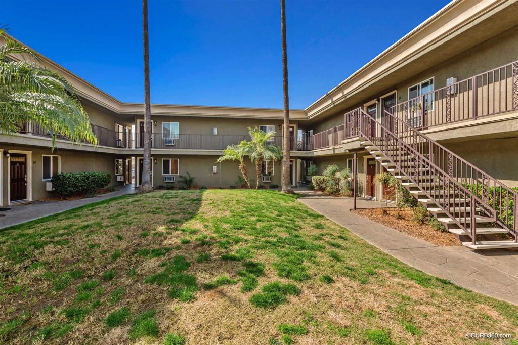 Perfect starter home in excellent condition!- Nicely upgraded, upstairs unit with granite counter tops, stainless steel appliances, wood laminate flooring, ceiling fan in the bedroom and in-unit laundry- The Villa Grigio complex is a fully gated and well maintained community w pool and tiki style barbecue patio, along with a lawn covered center courtyard area, and a fitness center- Quiet & secure community with control access, and 24hr video surveillance- located within minutes of I-8 freeway! VA Approved!